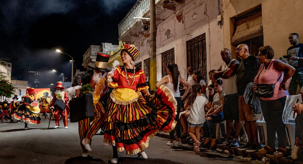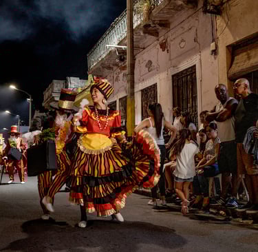 Comparsas desfilando en los quartièros de Montevidèo