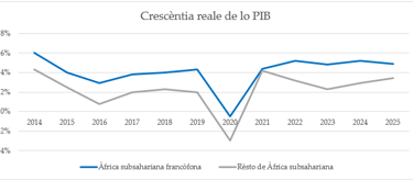 Secondo los datos recollèctos per lo CERMF ad partire de lo último rappòrto de perspectivas globales de lo Banco Mondiale, los 22 paeses francòfonos de Àfrica subsahariana han consequito una crescèntia mèdia de 4.9%, frònte ad 3.4% por lo rèsto de la regione.
